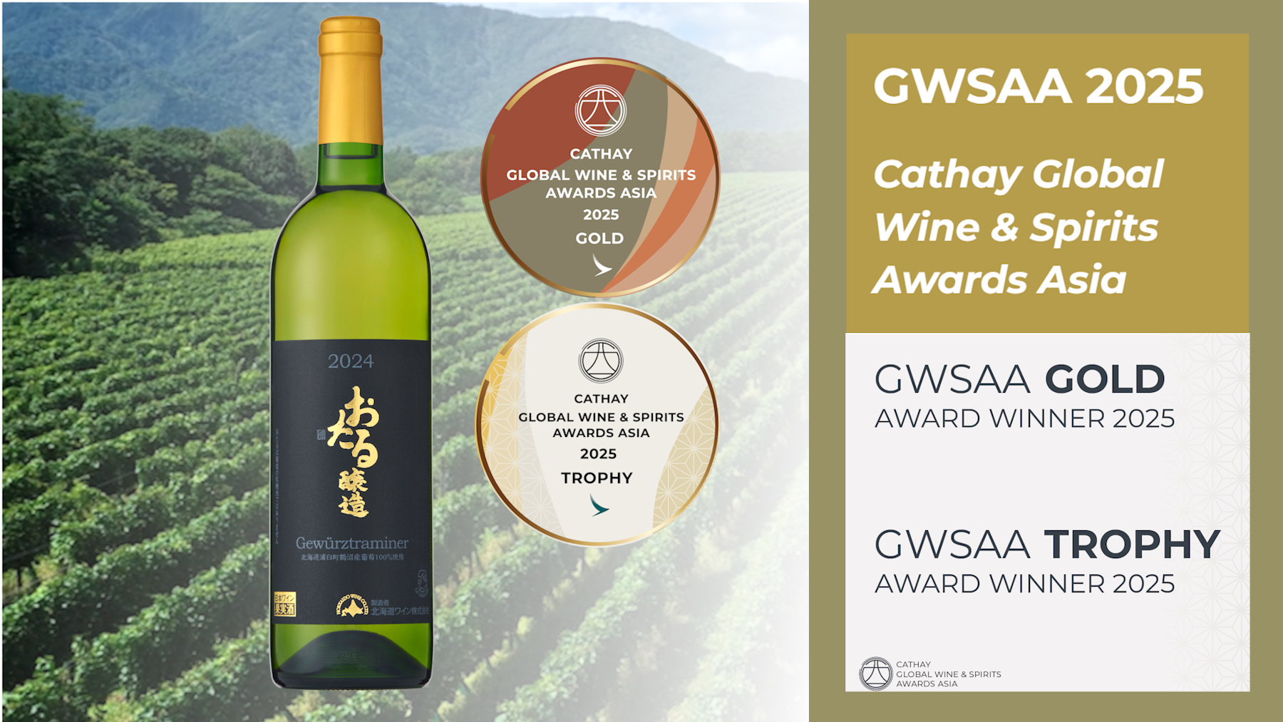 北海道ワイン「おたる ゲヴュルツトラミネール 2024」が、アジア最大級ワインコンペ「GWSAA2025」にて「金賞」および日本産ワインの最高賞「ベスト・ワイン・フロム・ジャパン トロフィー」を受賞