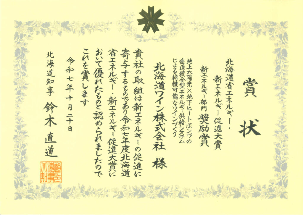■令和7年度 北海道省エネルギー・新エネルギー促進大賞「新エネルギー部門 奨励賞」
