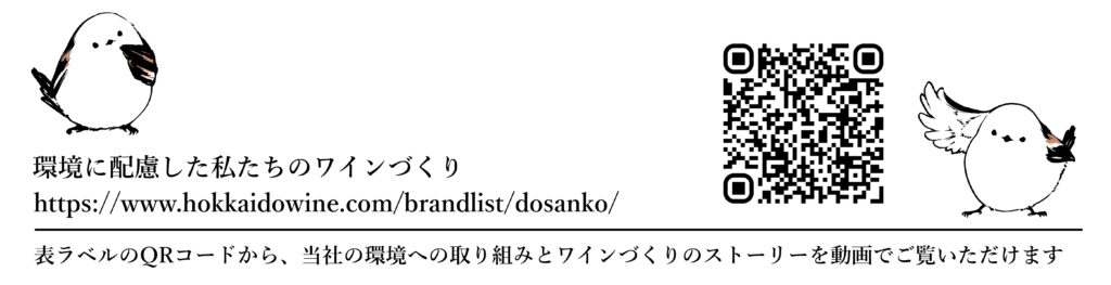 表ラベルに掲載したQRコードから、当社の環境配慮や持続可能なワインづくりに関する取り組みをご紹介する、特設ページへアクセスいただけます。一本のワインの背景にある、北海道の自然とともに歩むものづくりの姿勢を、あわせてお伝えいたします。*スマートフォンでの閲覧をおすすめいたします。